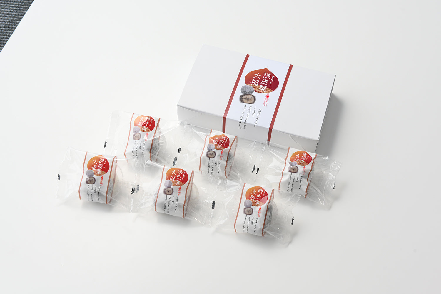 大粒の栗を渋皮ごとじっくり煮込み、なめらかなこし餡とともに羽二重餅で包み込んだ贅沢な大福です。栗本来の旨みと上品な甘さが調和した、心躍る逸品。冷凍で30日保存可能なので、贈り物やお茶の時間にぴったりです。